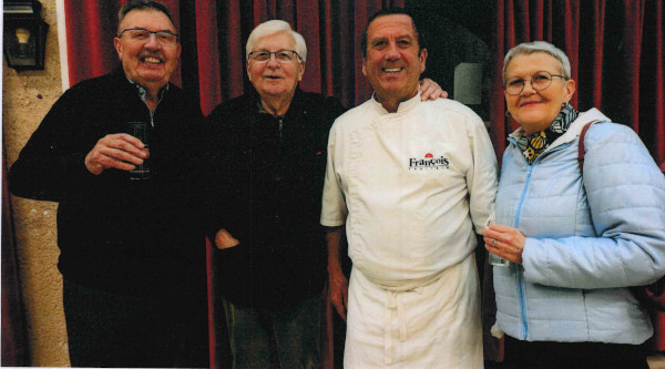 06 janvier 2023 : Réception au Chateau Fabert pour la cérémonie des voeux du Maire de Moulins, M. Bauchez. Sur la photo : Jean-Marie Donatello, vice président du CA du comité 57 de la FFMJSEA, Richard Haffner, membre du CA, J. François, traiteur 12eme borne Delme, Marie Ange Hamburger, Moulins. |