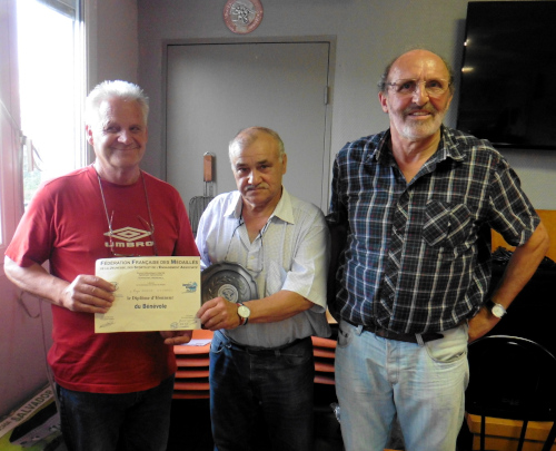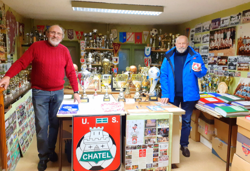 François Schembri, ancien joueur de l'US Châtel, qui avait été chargé de récompenser un dirigeant, Roger Sonrier, pour ses nombreuses années de bénévolat au sein du club, lors de l'AG du 24 juin 2016 |