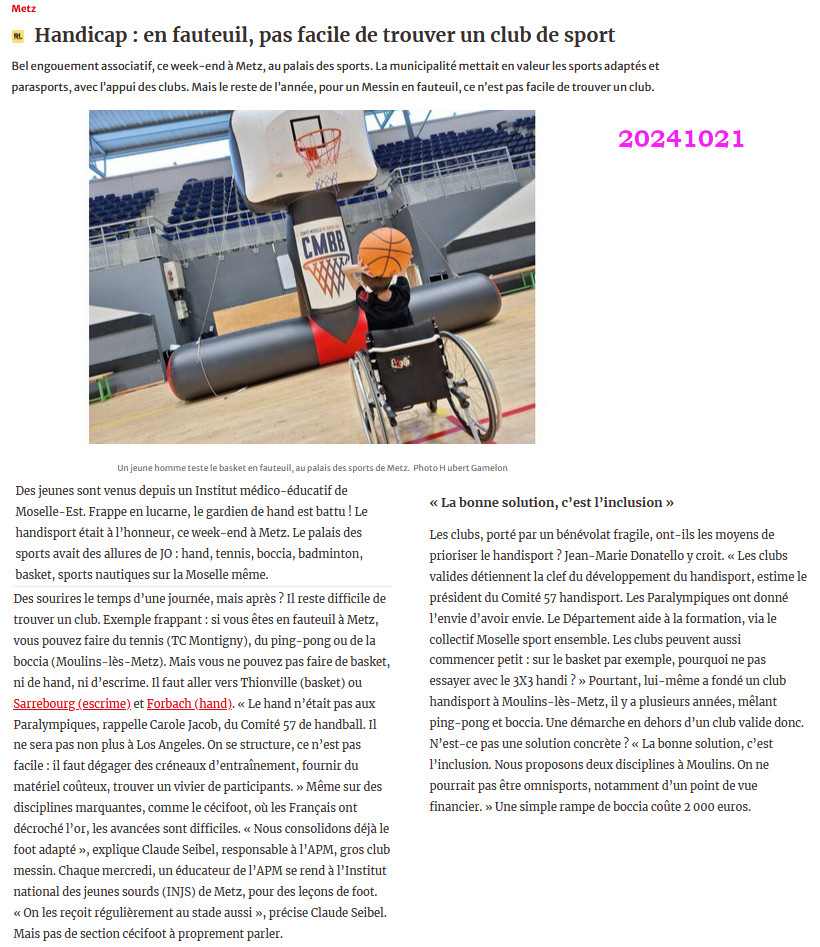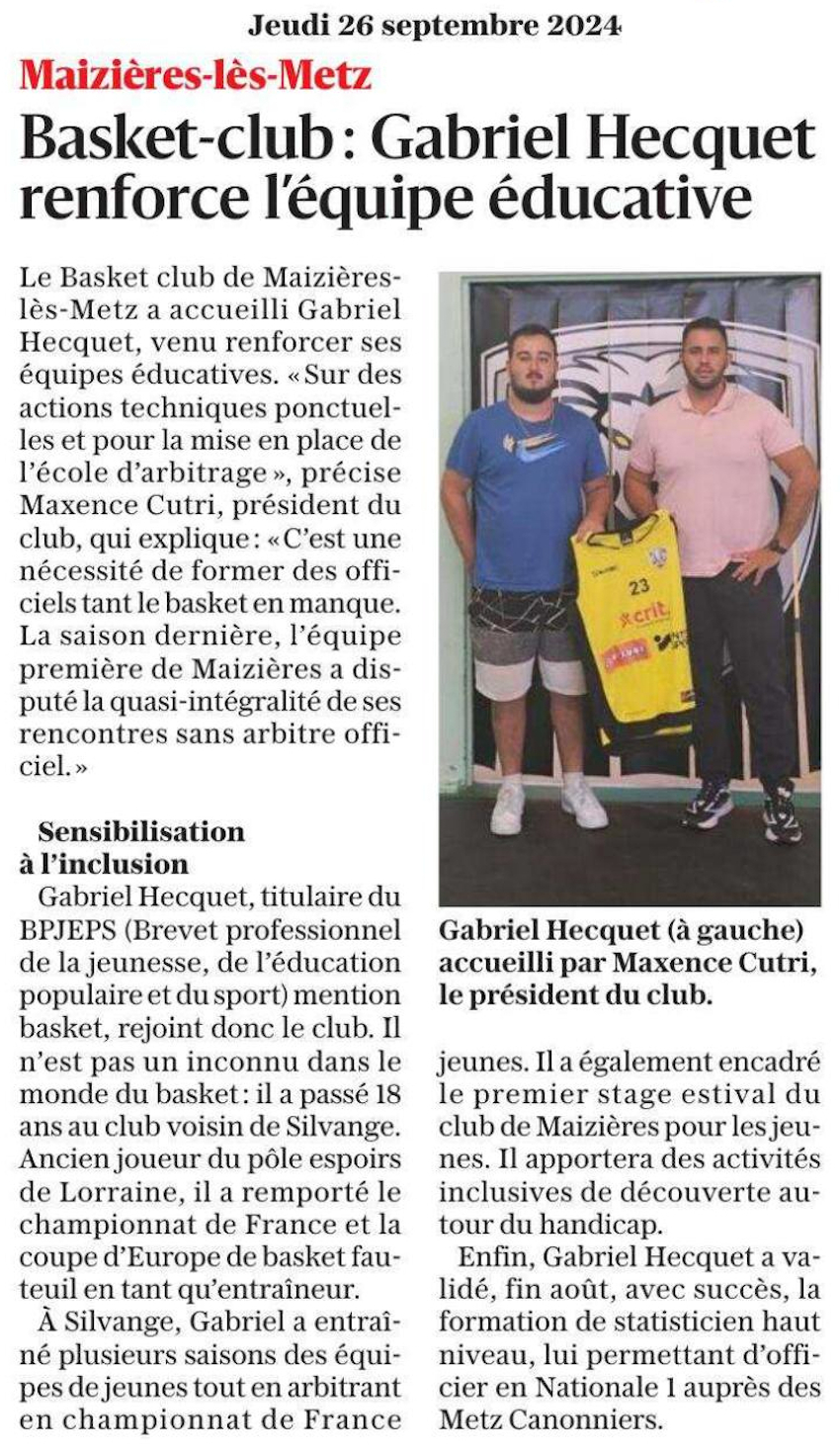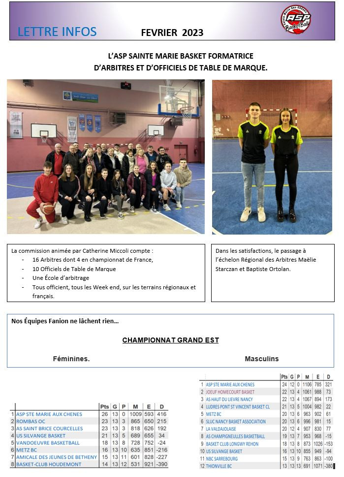 Notre ami Raymond Michel nous adresse des nouvelles de son club de basket situé à Ste Marie Aux Chênes |
