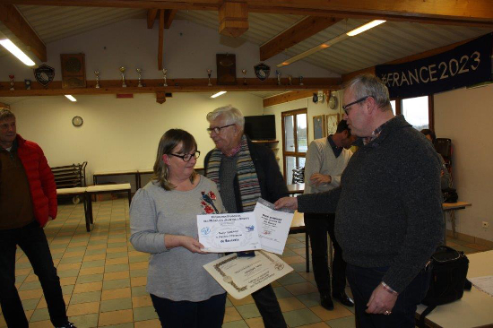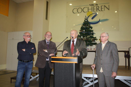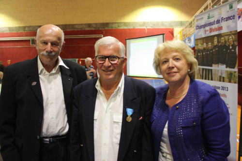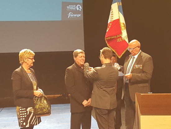 | Le centre socio culturel Daniel Balavoine a servi de cadre à la soirée des lauriers du Sport à Cocheren. A l'invitation de l'adjoint aux sports et à la culture, Mr Richard Ostrowski, notre Président accompagné du Secrétaire Gilles Michel ont honoré de leurs présences cette cérémonie d'hommage aux valeurs montantes des sports de la ville. Après les remises de récompenses à ces jeunes méritants, Mr le maire a accueilli auprès de lui Mr Georges Jambon, un bénévole de 94 ans. Après avoir retracé le parcours de plus de 65 ans de bénévolat du récipiendaire, Gérard Lejealle a remis solennellement la médaille de bronze de notre Ministère à ce toujours jeune pratiquant de pétanque. Un moment d'intense émotion, de respect pour le parcours du médaillé et de fierté de toute l'assistance. Quel plus bel hommage et d'exemple pour toute l'assistance. Toutes nos félicitations à ce nouveau médaillé qui a rejoint notre comité. | |