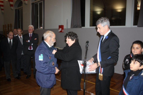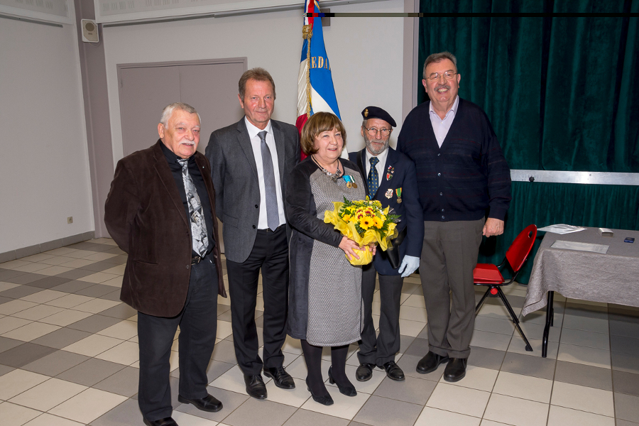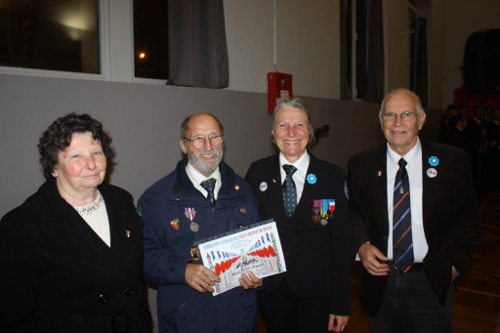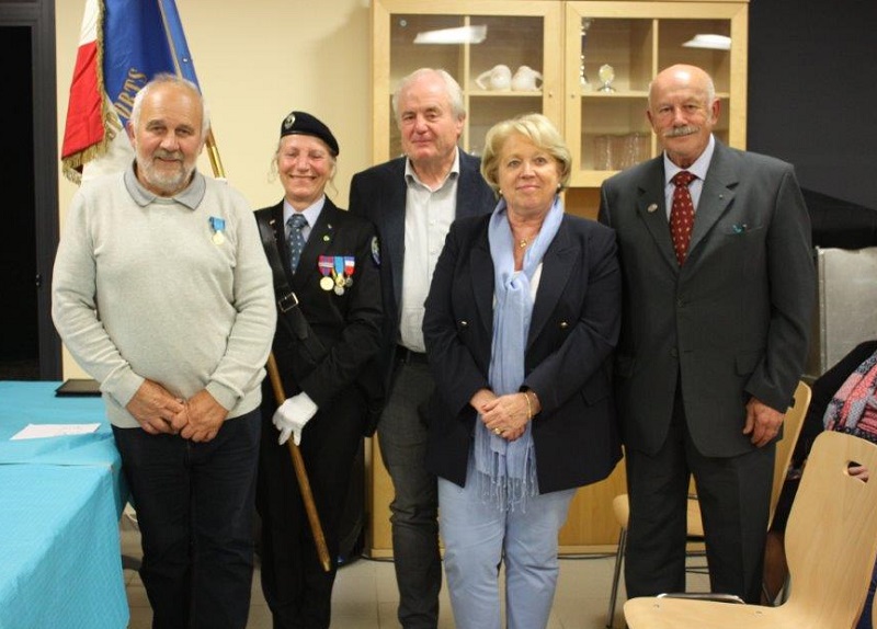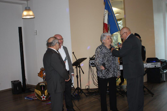| Remise de médaille à Madame Chantal Pallez, en présence de notre porte drapeau Bernard Friquet, de Jean Bayeur et de notre vice président Jean Marie Donatello. |