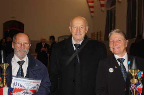 | Nos portes drapeaux se sont rendus à la cérémonie du 11 Novembre à Montigny les Metz. Notre ami Bernard y a été décoré de la médaille de bronze des portes drapeaux par Mme Courtiol, Présidente Départementale et en présence de Mr le Maire Jean Luc Bohl. On observera tous, que notre Président était de nouveau bien entouré. |