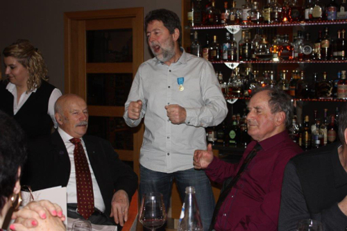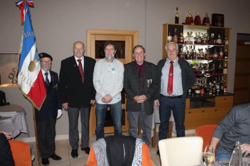 | Dimanche 19 Novembre s’est déroulée au Restaurant L’ARGOUSIER de Volmunster la remise de la médaille de bronze à Mr Jean Marie Keller entouré de ses deux parrains Mrs Francis Schneider et Rémy Seiwert. Le récipiendaire a été médaillé par notre Président Gérard Lejealle qui avait fait spécialement le déplacement accompagné de notre porte drapeau Bernard Friquet. J.M.Keller a commencé son bénévolat en foot à l’Association Sportive de Volmunster en 1973. En 2006 il prenait la présidence des Vétérans de Volmunster et en 2012 devenait vice président du Théâtre en Platt. Un beau parcours retracé par Mr Francis SCHNEIDER, actuel Président des Vétérans. Cette cérémonie pleine de spontanéité s’est poursuivie dans la bonne humeur agrémentée par des chants de couleur locale. L’A.S.Volmunster Vétérans se souviendra de cette remise de médaille honorant un de ses plus anciens membres. Rendez vous a été pris pour une future médaille. | |