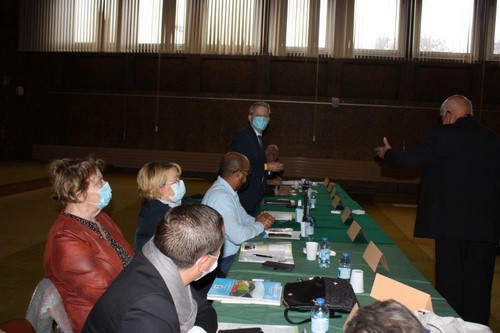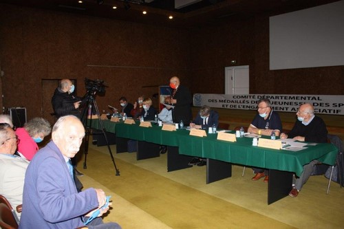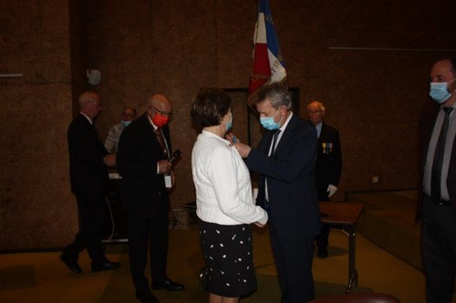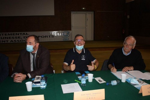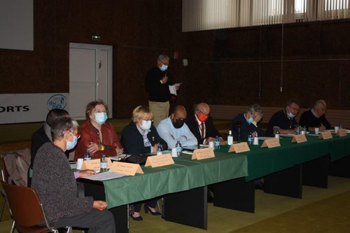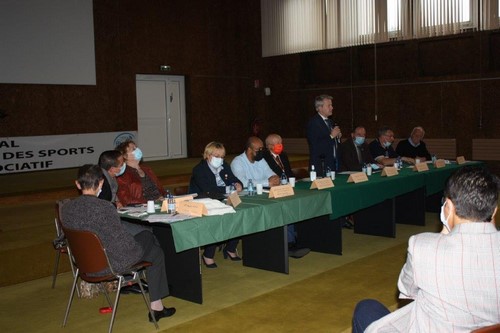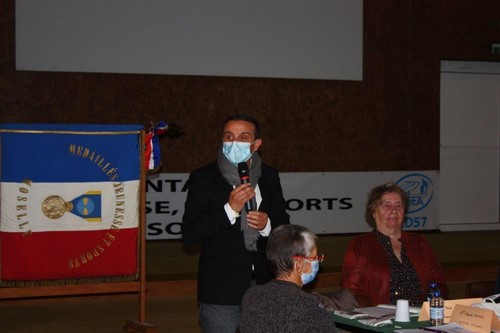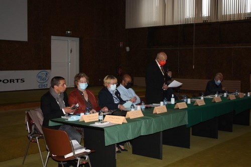 Dimanche 17 Octobre 2021 dans la salle des Congrès de l’Hôtel de Ville de Forbach se sont déroulées les A.G.Extraordinaire et Ordinaire du Comité des Médaillés JSEA de la Moselle. Devant une soixantaine de membres et en présence de Mmes Christelle Loria-Manck, adjointe au Maire et Conseillère Départementale représentant le Pt Patrick Weiten , Janine Wrona, Présidente du Comité Régional MJSEA Grand Est , de Mrs Rachid Saim, adjoint au Maire de ville de Forbach, J.M.Donatello, Vice-Président du CDOS représentant Mme Agnes Raffin, Christophe Arend, Député de la Moselle, Saïd Ould Yahia, Responsable du Service Départemental Jeunesse, Sports et Engagement Associatif et Olivier Cottet, Directeur Académique des Services de l’Education Nationale, représentant le Préfet, l’ordre du jour s’est déroulé avec précision et savoir-faire. Après avoir honoré par une minute de silence le décès de trois membres de notre Comité, Mrs Michel Lapaque, Mr Jean Bayeur et Mr André Dessymoulie, les modifications des statuts approuvées à l’unanimité ont porté sur la nouvelle appellation de notre médaille, du site Web et de la nouvelle adresse de notre siège social à Verny. L’AG ordinaire a vu ses rapports votés à l’unanimité moins une voix et la réélection des réviseurs aux comptes actée. Puis s’est déroulé le vote du comité Directeur des quatre prochaines années. Celui-ci a accueilli trois nouveaux membres dont deux dames, Mmes Suzanne Wrona, Danièle Mathis et Mr Pierre Cordier. La parité est en route. Après réunion, le Comité a renouvelé sa confiance à Mr Gérard Lejealle pour la Présidence de l’Association. Mme Yolande Petit, Mrs Jacques Viron, Jean Marie Donatello et René Comoretto ont été élus Vice- Présidents. Mrs Pierre Eric Harff-Gilet, Hervé Deratte, Mme Manette Lagarde et Gilles Michel continuent dans leurs fonctions antérieures. Les remises de médailles ont vu Mme Béatrice Buchheit se faire remettre la médaille de Bronze de notre Ministère par Mr Olivier Cottet et la médaille de bronze également à Mme Marie Christine Roche par Mr Christophe Arend. Pour finaliser cette cérémonie, notre Président a remis à la ville de Forbach et au Directeur Académique la Plaquette Or de notre Comité Départemental 57. Un apéritif offert par la ville de Forbach a été suivi d’un repas préparé par le traiteur Maurice Luthardt. Le point d’orgue de cette journée a été la tombola avec de nombreux lots de valeur. Rendez-vous est donné pour 2022 avec l’espoir de tourner le dos à cette pandémie.